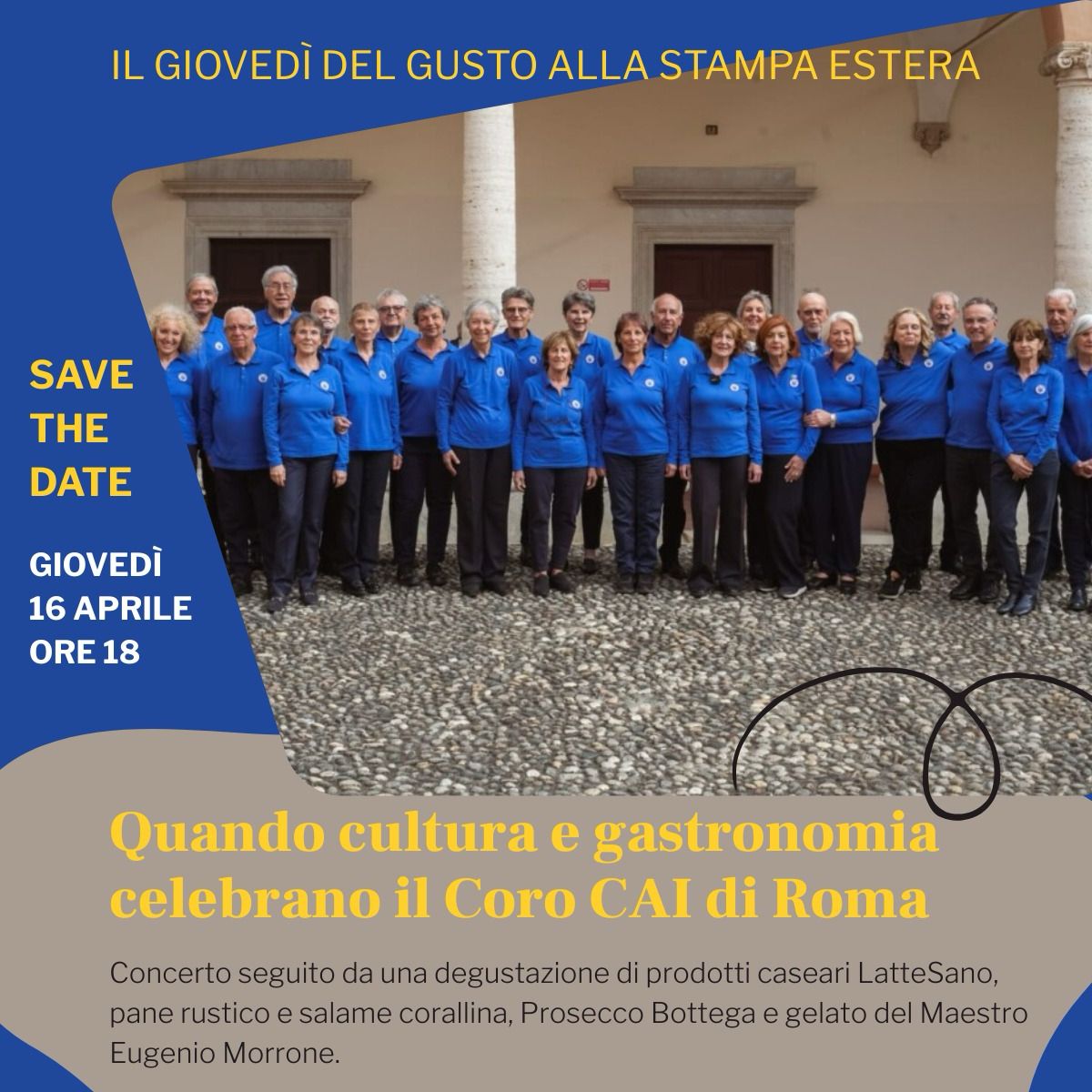 Anche per il 2026 il Coro CAI Roma è stato invitato ad un concerto presso la sede romana della Stampa Estera, a via del Plebiscito 102 (Palazzo Grazioli). Il Coro si esibirà Giovedì 16 aprile alle ore 18, con un repertorio di brani popolari regionali dal carattere allegro e festoso ed alcuni canti di montagna.