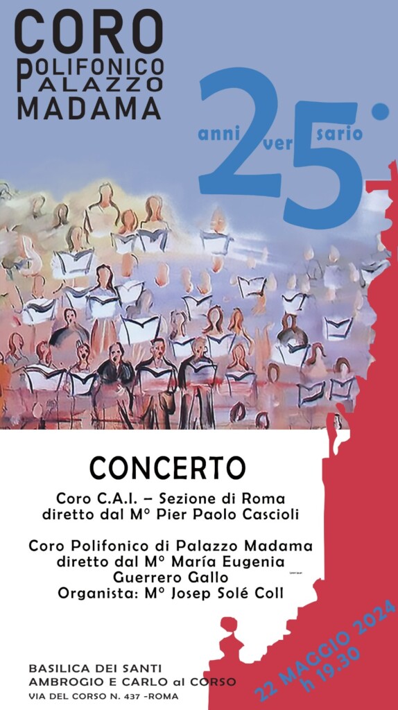 Il Coro Cai Roma si esibirà in un concerto insieme al Coro Polifonico di Palazzo Madama, che festeggia il suo 25° anniversario.