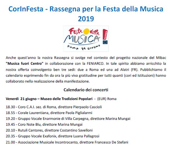 CorInFesta – Rassegna per la Festa della Musica 2019
